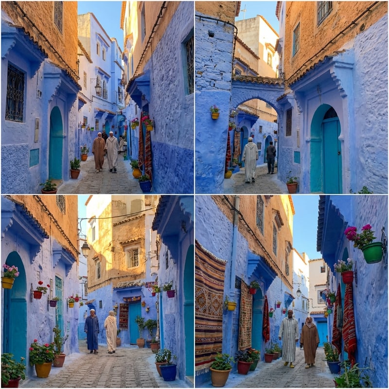 Discover Chefchaouen’s iconic cobalt lanes, 15th-century kasbah, and Andalusian-Moroccan fusions on foot, then contrast them with sleek contemporary riad restorations and panoramic rooftop viewpoints.